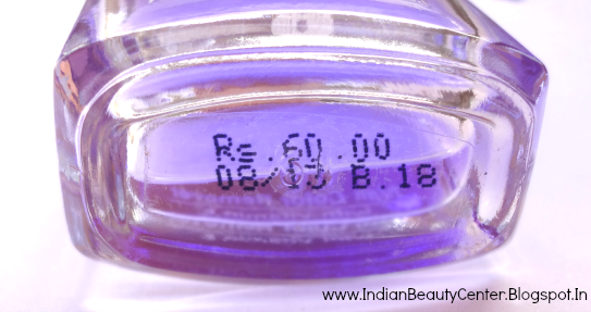 This comes in a slightly heavy glass bottle with a peach colored cap. If you open the cap, you will see a pretty big hole that drop by drop pours down the liquid nail color remover. The color of this remover is slightly purplish and this remover smells pretty strong and alcoholic! I guess, this is not a acetone free nail polish remover :-/ Also the ingredients list has not been mentioned anywhere...But the shelf life of 3 years is a great thing for us :))